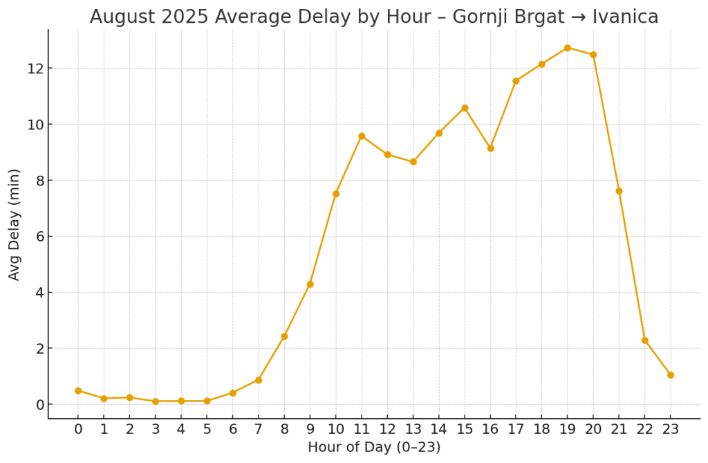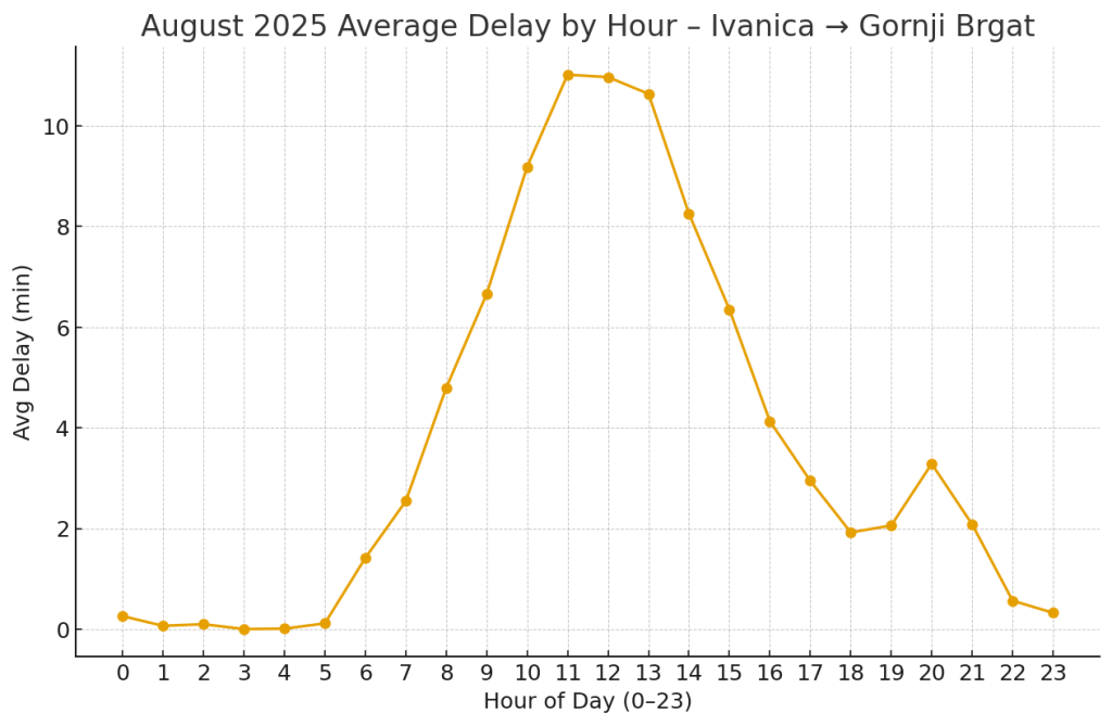 This report summarizes average waiting times at the main border crossings around Trebinje (Ivanica ↔ Gornji Brgat during August 2025.
