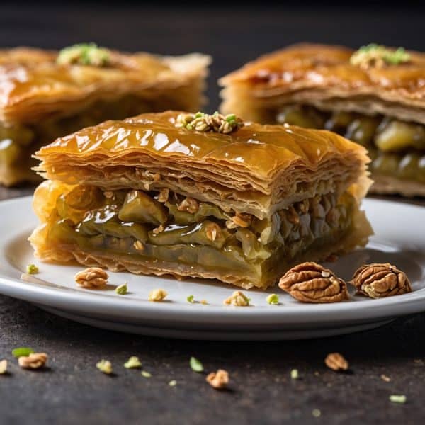 Baklava → Layers of filo pastry filled with walnuts or pistachios, soaked in syrup. In Sarajevo, baklava shops still follow recipes perfected over centuries.