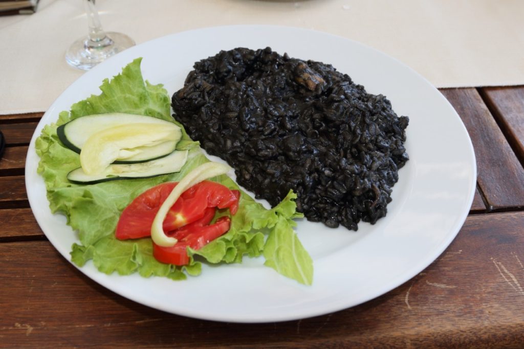 - Black Risotto (Crni Rižot) → A seafood risotto made with cuttlefish ink, olive oil, and white wine.