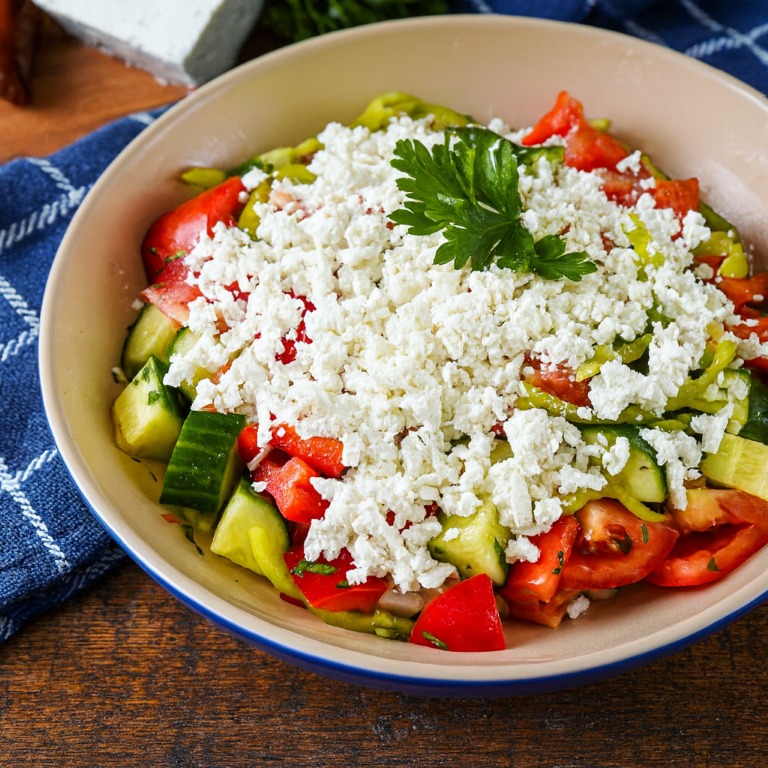 Šopska Salad → Tomatoes, cucumbers, peppers, onion, and grated white cheese. Fresh and colorful, especially good in Herzegovina’s summer season.